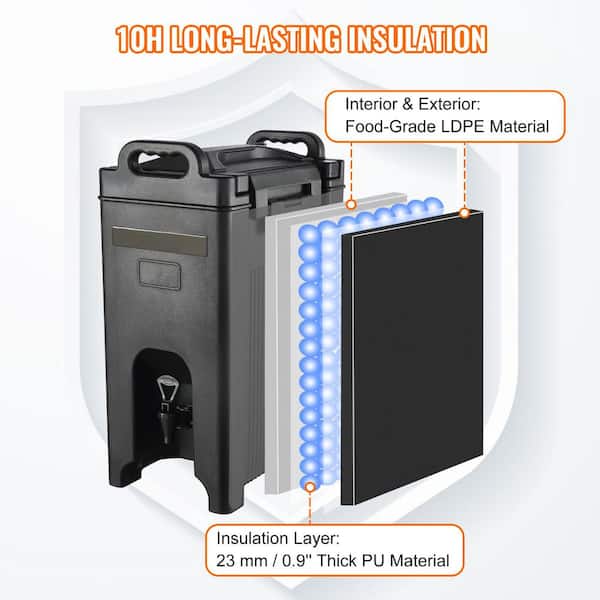 5 Gal. Insulated Beverage Dispenser, Food-Grade LDPE, 0.9 in. PU Layer, Two-Stage Faucet, for Restaurants and Cafes