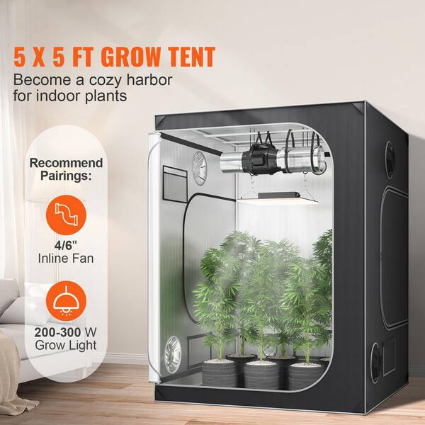 5 x 5 Grow Tent, 60 in. x 60 in. x 80 in. High Reflective 2000D Mylar Hydroponic Growing Tent with Observation Window