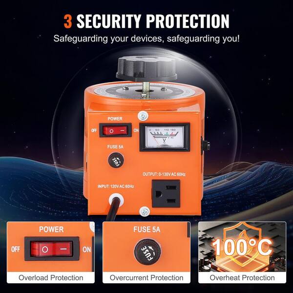 500VA Auto Voltage Regulator, AC Transformer, 3.84 Amp, 110V Input, 0-130V Output, Thermal Control, 4 Fuses for Home