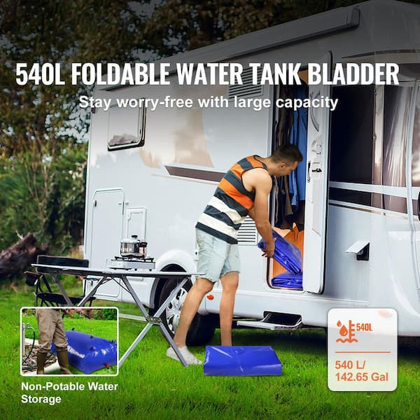540 L/142.7Gal. Water Storage Bladder RV Water Tank, 1000D Blue PVC Collapsible Water Storage Containers, Large Capacity