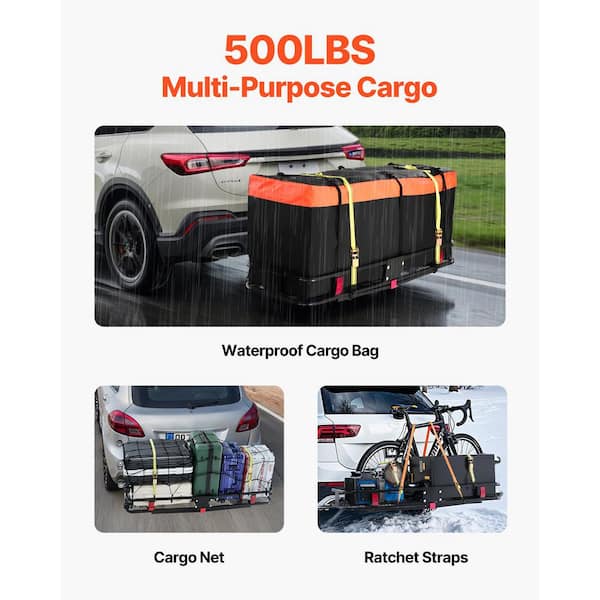 60 in. x 20 in. x 6 in., Hitch Cargo Carrier, 500 lbs. Capacity HitchCargo Carrier with Cargo Net, Waterproof Cargo Bag