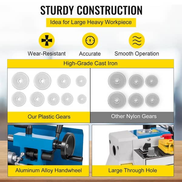 7 in. x 14 in. Metal Lathe 550-Watt Precision Bench Top Design, Variable 50-2500 RPM, Nylon Gears, Includes Movable Lamp