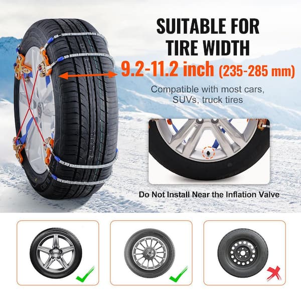 8 PCS Snow Chains, Manganese Alloy Steel Tire Traction for 9.2-11.2 in. /235-285 mm Tires, for Cars, SUVs, Trucks