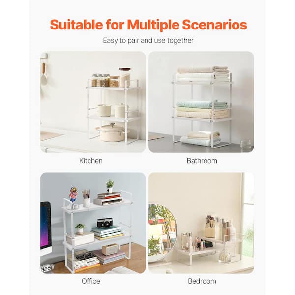 Adjustable Kitchen Cabinet Shelf Organizer, Expandable 2-Tier Cabinet Shelf, Stackable Countertop Organizers, White