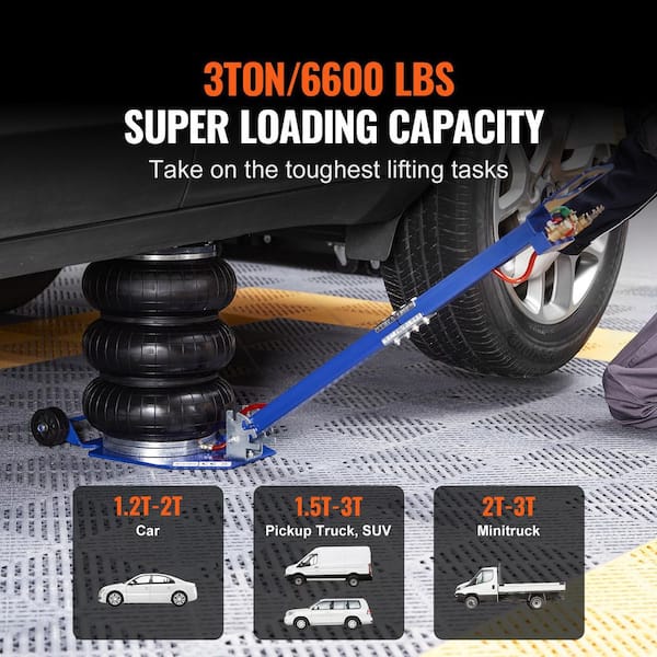 Air Jack, 3 Ton/6600 lbs. Triple Bag Air Jack, Airbag Jack, Lift up to 17.7 in., 3-5 s Fast Lifting Pneumatic Jack, Blue