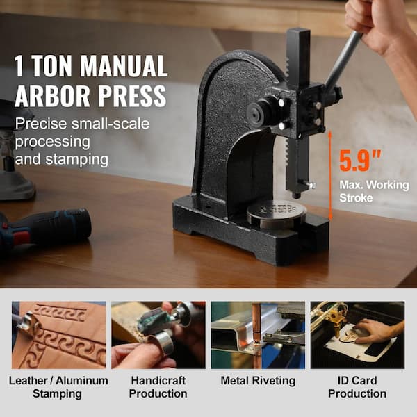 Arbor Press, 1 Ton Manual Arbor Press, 5.9 in. Maximum Height, Cast Iron Heavy-Duty Manual Desktop Arbor Press