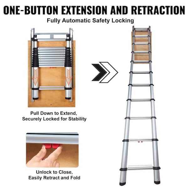 Attic Ladder Telescoping, 350 lb. Capacity, 39.37 in. x 23.6 in., Multi-Purpose Aluminium Extension, Lightweight