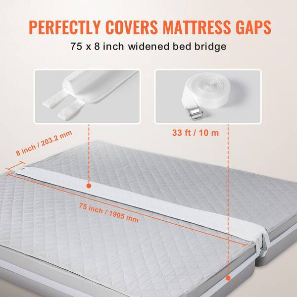 Bed Bridge, King Bed Converter Kit, Split King Gap Filler with Metal Buckle Strap 25D Memory Foam (75 in. L x 8 in. W)