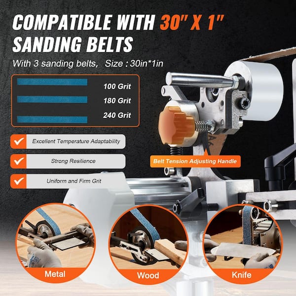 Belt Grinder Sander, 30 in. x 1 in. Variable Speed with VFD, 2-Moulds and Sanding Belts, 550W Grinding Machine