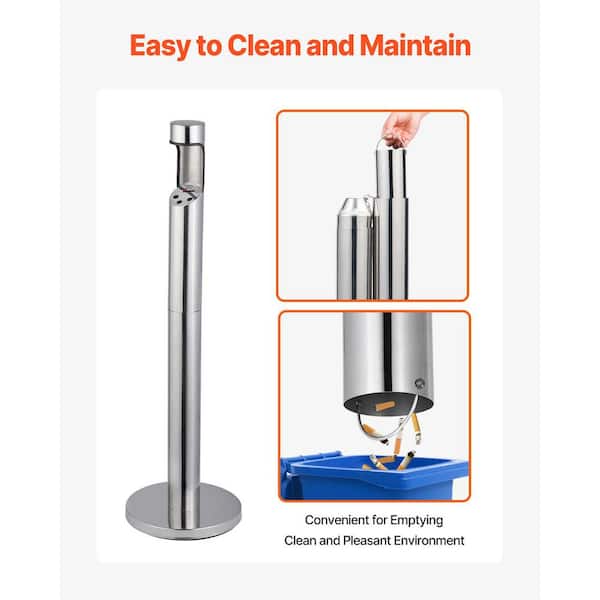 Cigarette Butt Receptacle, Freestanding and Weatherproof Outdoor Ashtray, Stainless Steel Cylinder Cigarette