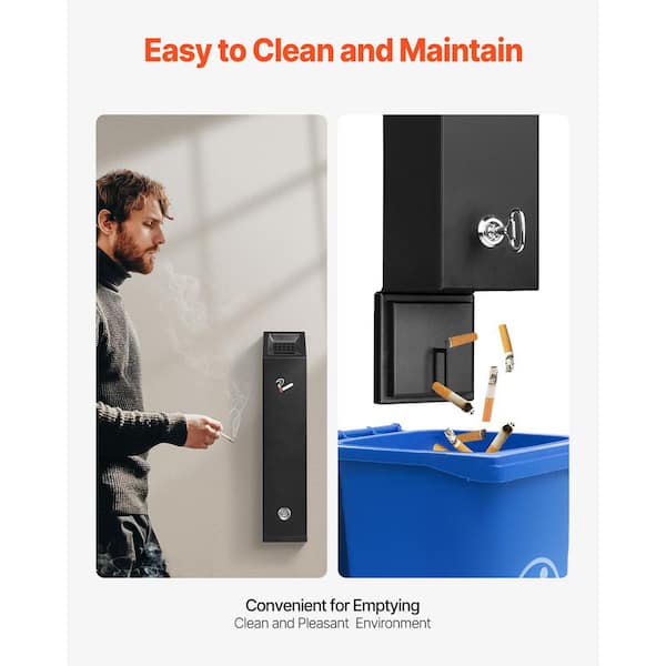 Cigarette Butt Receptacle, Stainless Steel Cuboid Cigarette Butt Container Wall Mounted and Weatherproof Outdoor Ashtray