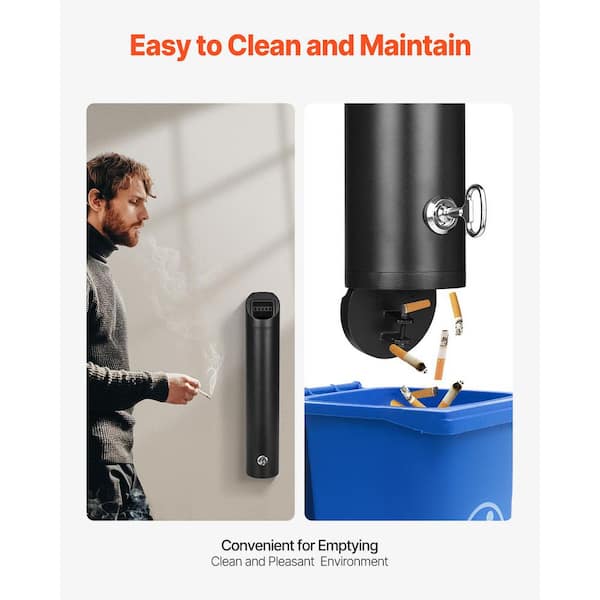 Cigarette Butt Receptacle, Stainless Steel Cylinder Cigarette Butt Container, Wall Mounted, Outdoor Ashtray, Black