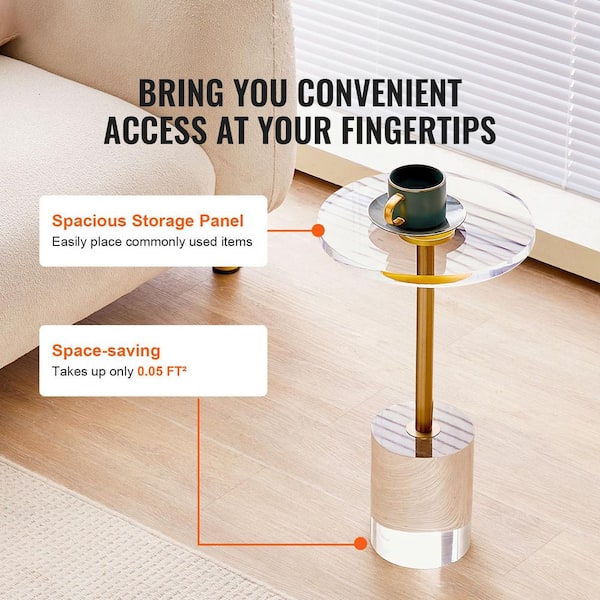 Clear Acrylic End Table, Acrylic Side Table with a Solid Base, 11.9 x 11.9 in. Round Tabletop, 21.4 in. High