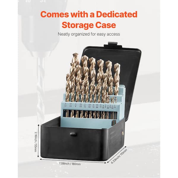 Cobalt Drill Bit Set, (29-Piece), M35 High Speed Steel Cobalt Drill Bits, Storage Case, for Professional Work Home DIY