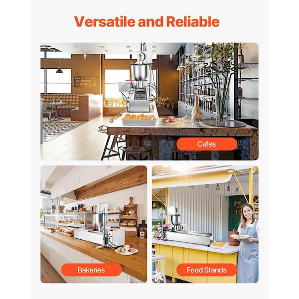 • Make donuts in three sizes: mini, standard, and large