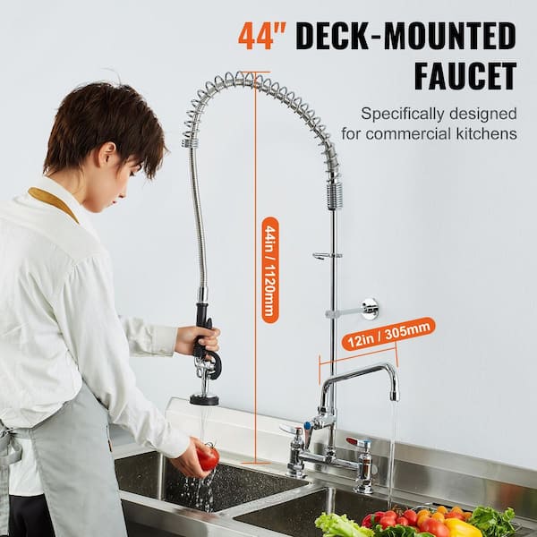 Commercial Faucet 44 in. Double Handle Pull Down Sprayer Kitchen Faucet for 1/2/3 Compartment Sink in Silver