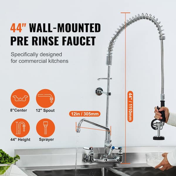 Commercial Faucet Double Handle Pull Down Sprayer Kitchen Faucet Deck Mount Kitchen Sink Faucet, Silver