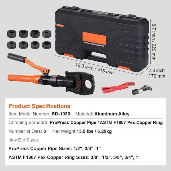Copper Pipe Crimping Tool, Hydraulic Driven Press Tool with 1/2 in., 3/4 in., 1 in. Jaws for Copper Pipe