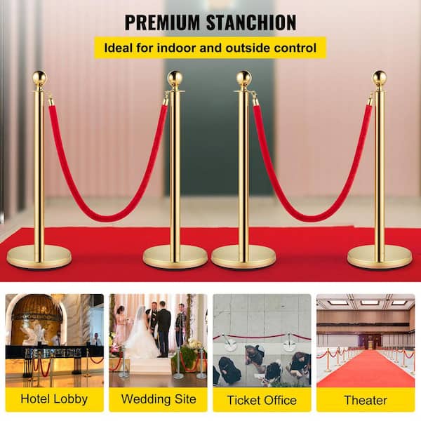 Crowd Control Stanchion, Set of 4 Pieces Stanchion Set, Stanchion Set with 5 ft./1.5 m Red Velvet Rope, Crowd Control