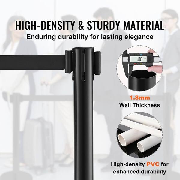 Crowd Control Stanchions, 2-Pack Crowd Control Barriers w/ 6.5 ft. Black Retractable Belt, Plastic Stanchion Queue Post