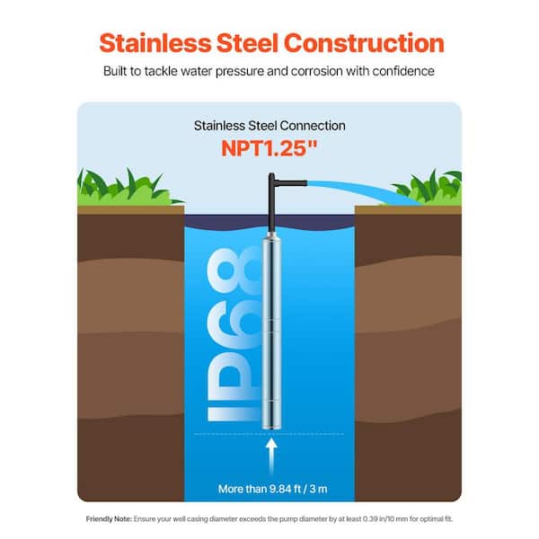Deep Well Submersible Pump, 1.5 HP Output Power, 115V, 31.7 GPM Flow 276 ft. Head, with 32.81 ft. Cord, Stainless Steel