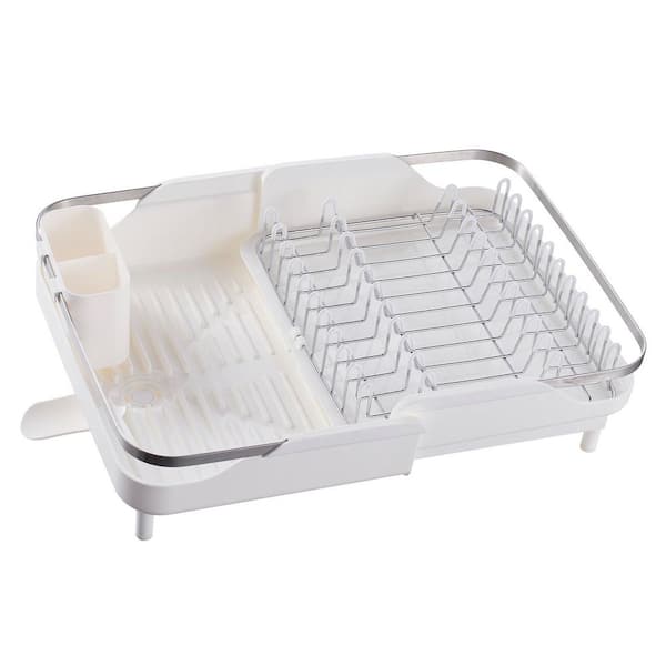 Dish Drying Rack, Expandable Storage Space Saver, White Standing Dish Rack, Stainless Steel Dish Drainer with Drainboard