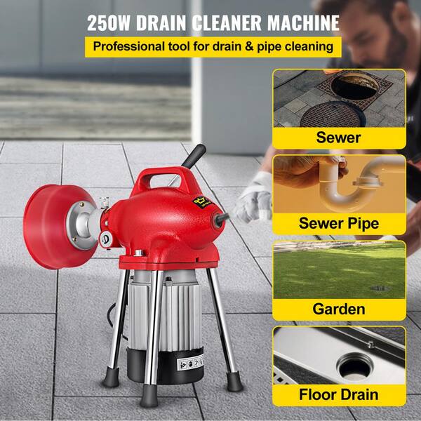 Drain Cleaner Machine 250-Watt 2 Cable Electric Drain Auger for 3/4 in. to 4 in. Pipes Power Spin with Autofeed Function