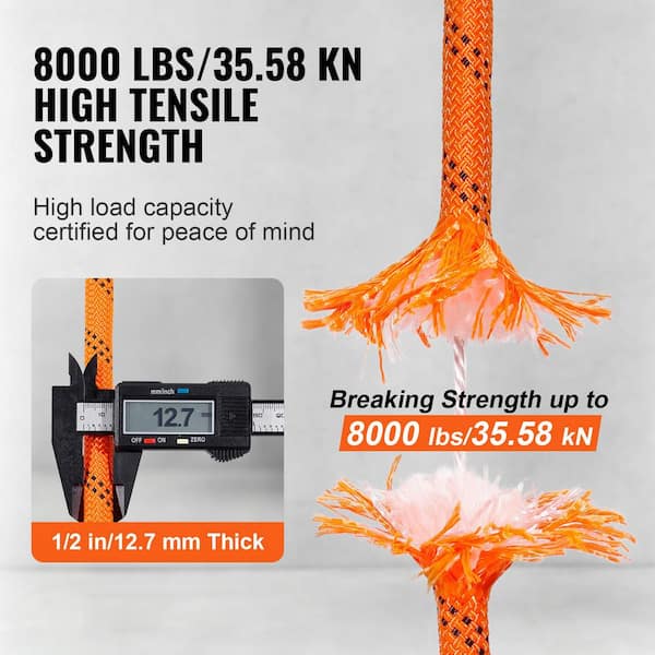 Dual Polyester Cord, 1/2 in. x 220 ft, 48-Strand, 8000 lbs. Tensile Strength, Multi-Use Outdoor Rope for Camping, Woven