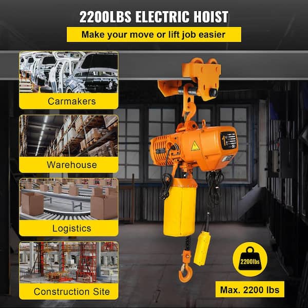 Electric Chain Hoist, 2200 lbs. Double Electric Chain Hoist, 5ft. Wired Remote Control, G80 Chains and Forged Steel Hook