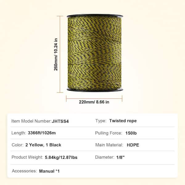 Electric Fence Wire, 3366Ft. 1026M Portable Polywire, 1/8 in. Diameter 6 Stainless Steel Strands for Conductivity