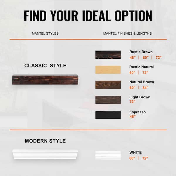 Fireplace Mantel, 72 in. x 8 in. x 5 in. Decorative Wall Shelf, Natural Wood Mantel for Over Fireplace, White