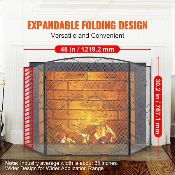 Fireplace Screen 3-Panel Sturdy Iron Mesh Fireplace Screen 48 in. (L) x 30.2 in. (H) Spark Guard Cover
