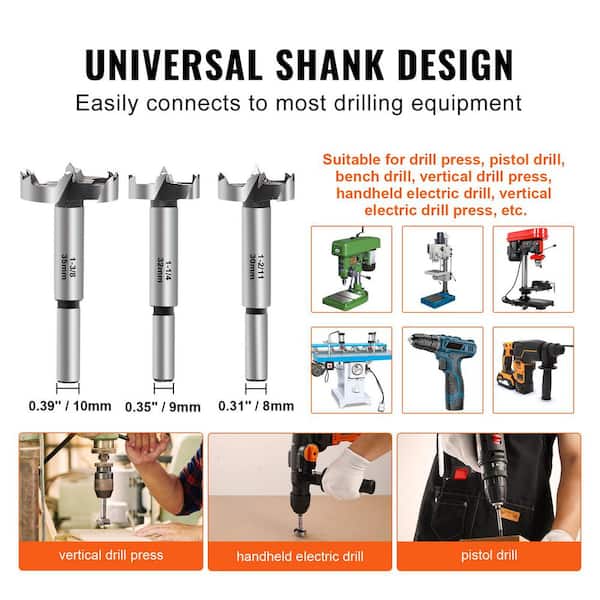 Forstner Bit Set, 16 Pcs Forstner Drill Bits Set, 1/4 in. to 1-5/8 in. Carbon Steel, W/ Round Shank, Forstner Drill Bit