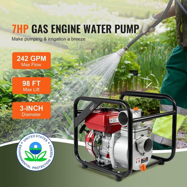 • 7 HP gas engine water pump with 242 GPM and 98 Ft. Max Lift