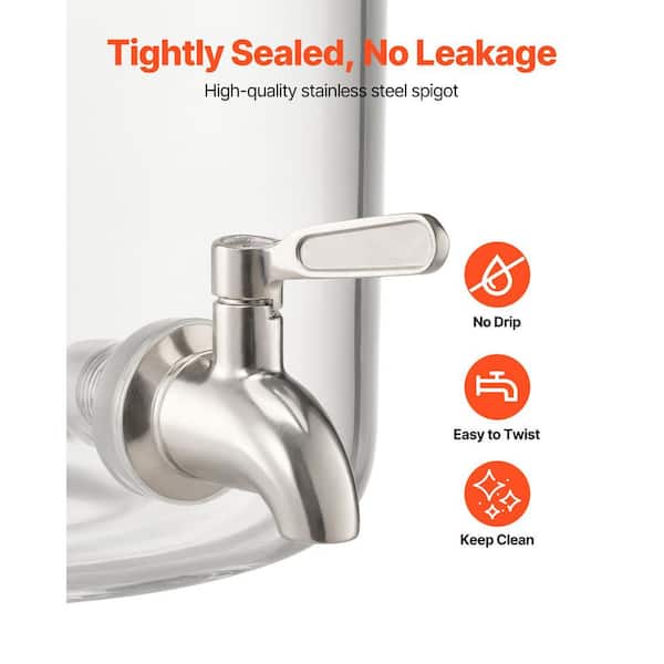Glass 2.2 Gal. Beverage Dispenser for Parties, with Wood Stand, Stainless Steel Spigot, Iced Tea, Lemonade, Juice, Water