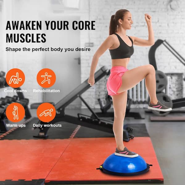 Half Exercise Ball Trainer, 26 in. Balance Ball Trainer, 1500 lbs. Capacity Stability Ball, Yoga Ball with Bands, Blue
