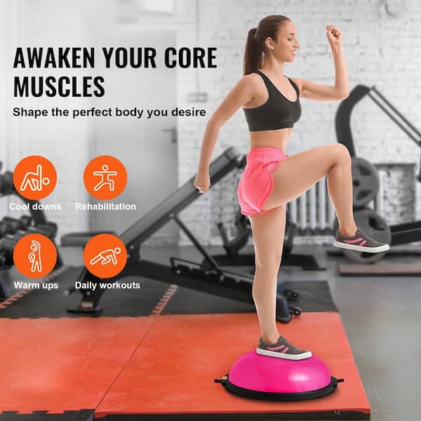 Half Exercise Ball Trainer 26 in. Balance Ball Trainer 1500lbs Capacity Stability Ball Yoga Ball with Bands Pink