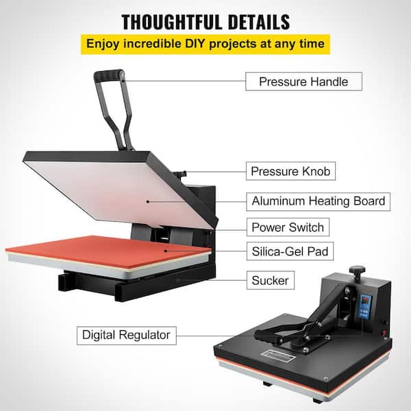 Heat Press 16 x 20 in. 1700-Watt Power Heat Press MachineFast Heating High Pressure Heat Press Machine for T-Shirt Black