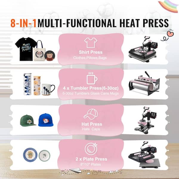 • Versatile 8 in 1 heat press machine allows creative expansion