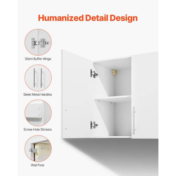 Laundry Room Wall Cabinet, 2-Tier Wall Mounted Hanging Cabinet with 2 Doors, 16 x 32 x 24 in. (D x W x H), White