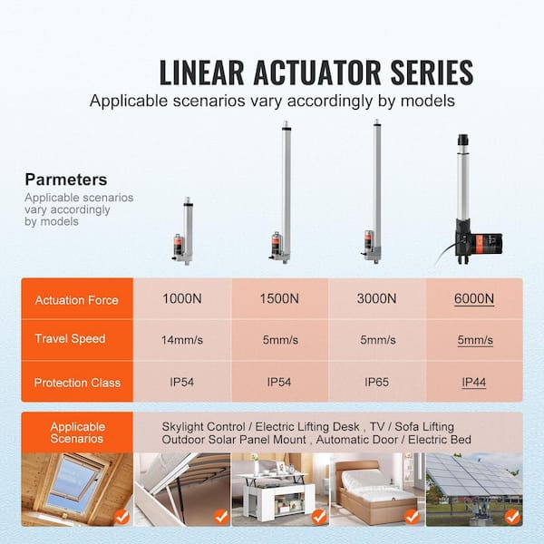 Linear Actuator 12V, 8 in. Heavy Duty 1320 lbs. /6000N Linear Actuator, 0.19 in. /s Linear Motion Actuator