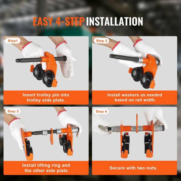Manual Trolley, 1100 lbs. /0.5 Ton Load Capacity, Push Beam Trolley with Dual Wheels, Adjustable for Width 2.5 to 8 in.