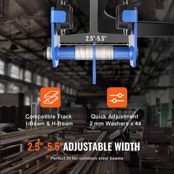 Manual Trolley, 1100 lbs./0.5 Ton Load Capacity Push Beam Trolley with Dual Wheels, I-Beam Flange Width 2.5 to 5.5 in.