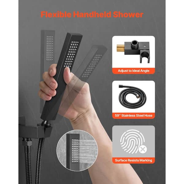 Matte Black Shower Faucet Set, 1 Spray Wall Mounted Brass Valve, Trim Kit, 8 in. Rain Shower Head and Handheld