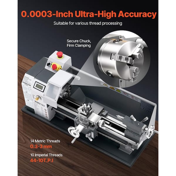 Metal Lathe 8 x 16 in. 550W Benchtop Lathe Machine 0-2500 RPM Variable Speed with 0.0003 in. Spindle Accuracy Metal Gear