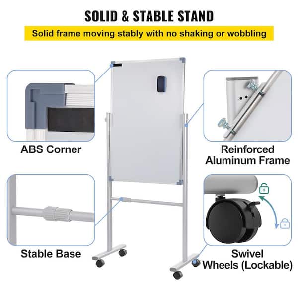 Mobile Magnetic Whiteboard, 43.3 in. x 36 in. White Rolling Dry Erase Board with Aluminum Framed, Memo Board
