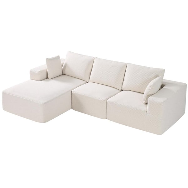 Modular Sectional Sofa, L Shaped Modular Sofa with Chaise, Cloud Sectional Couch with Rebound Density Plastic White