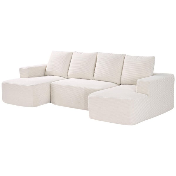 Modular sectional sofa, U-shaped sofa with chaise longue, high resilience foam and density cloud sofa White Cushion