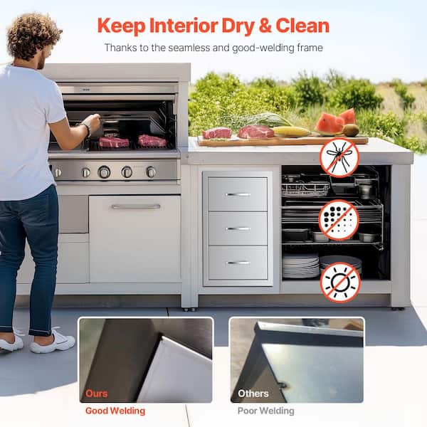 Outdoor Kitchen Drawers 16.5 in. W x 29 in. H x 20.5 in. D Triple Access Drawers Stainless Steel Flush Mount Cabinets