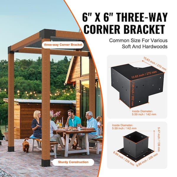 Pergola Bracket Kit 6 x 6 in. 8-Pieces 3-Way Heavy Duty Corner Bracket Woodworks DIY Post Base Kit Easy Installation